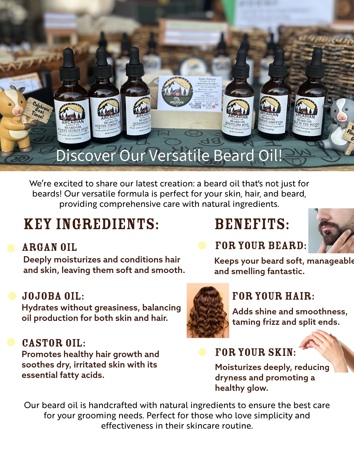 I love this product already. Just got the beard oil and put some on the ends of my hair...SO silky, not greasy at all. Thank you Arcadian for turning me on this - and the wonderful soap and delicious smelling candle.